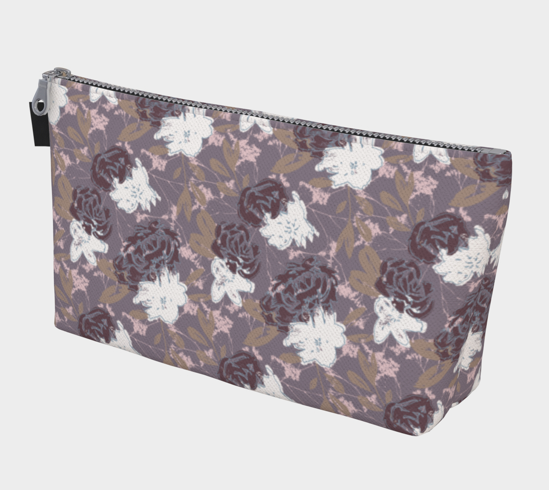 Denim lined zippered bag featuring a dreamy and enchanting floral print. Made from durable canvas with ykk zipper and inner pocket, there’s many ways you can use your new canvas bag. Available in both small size (10" by 6") and large size (12" by 7"), this bag can go everywhere with you.